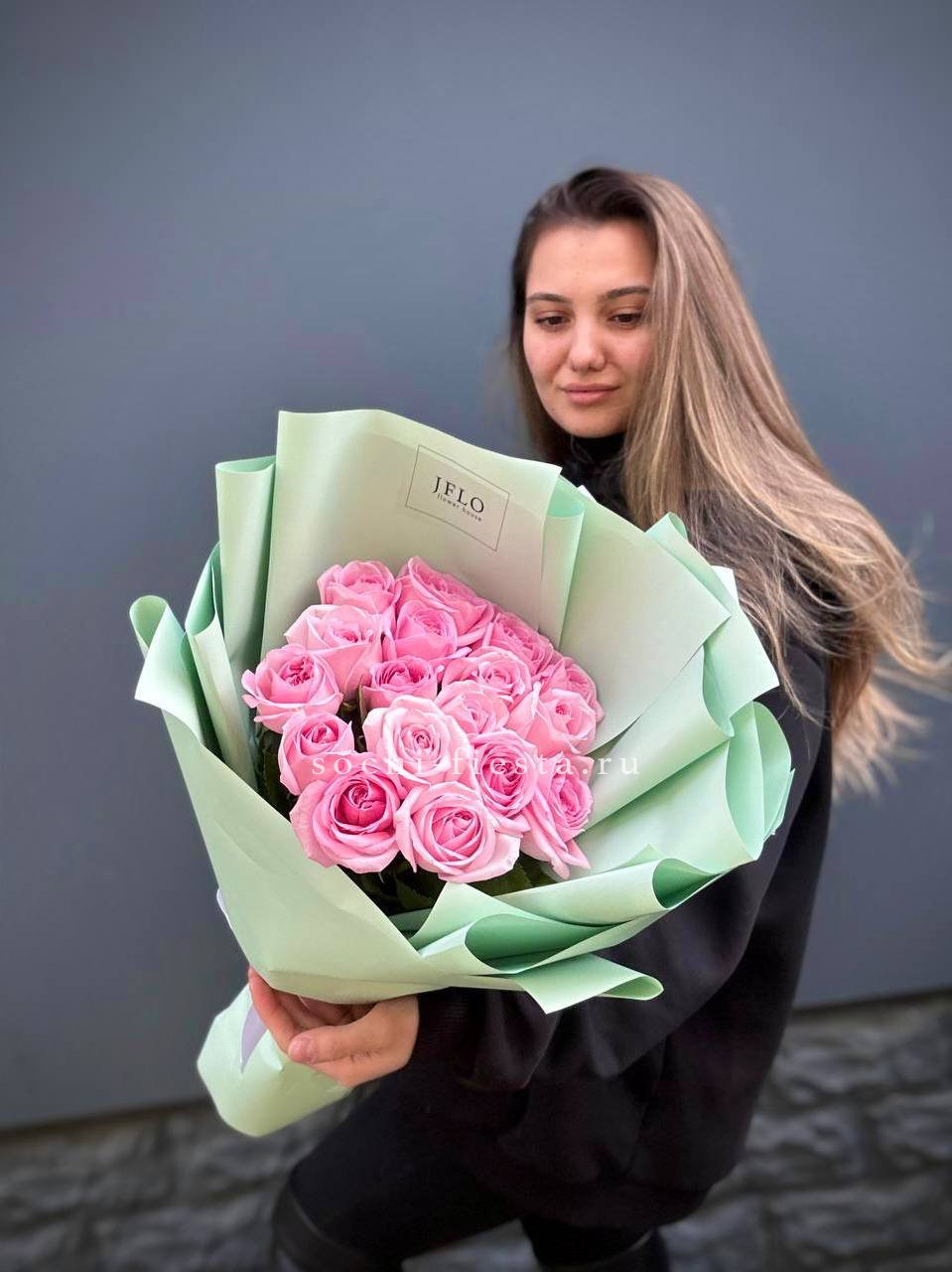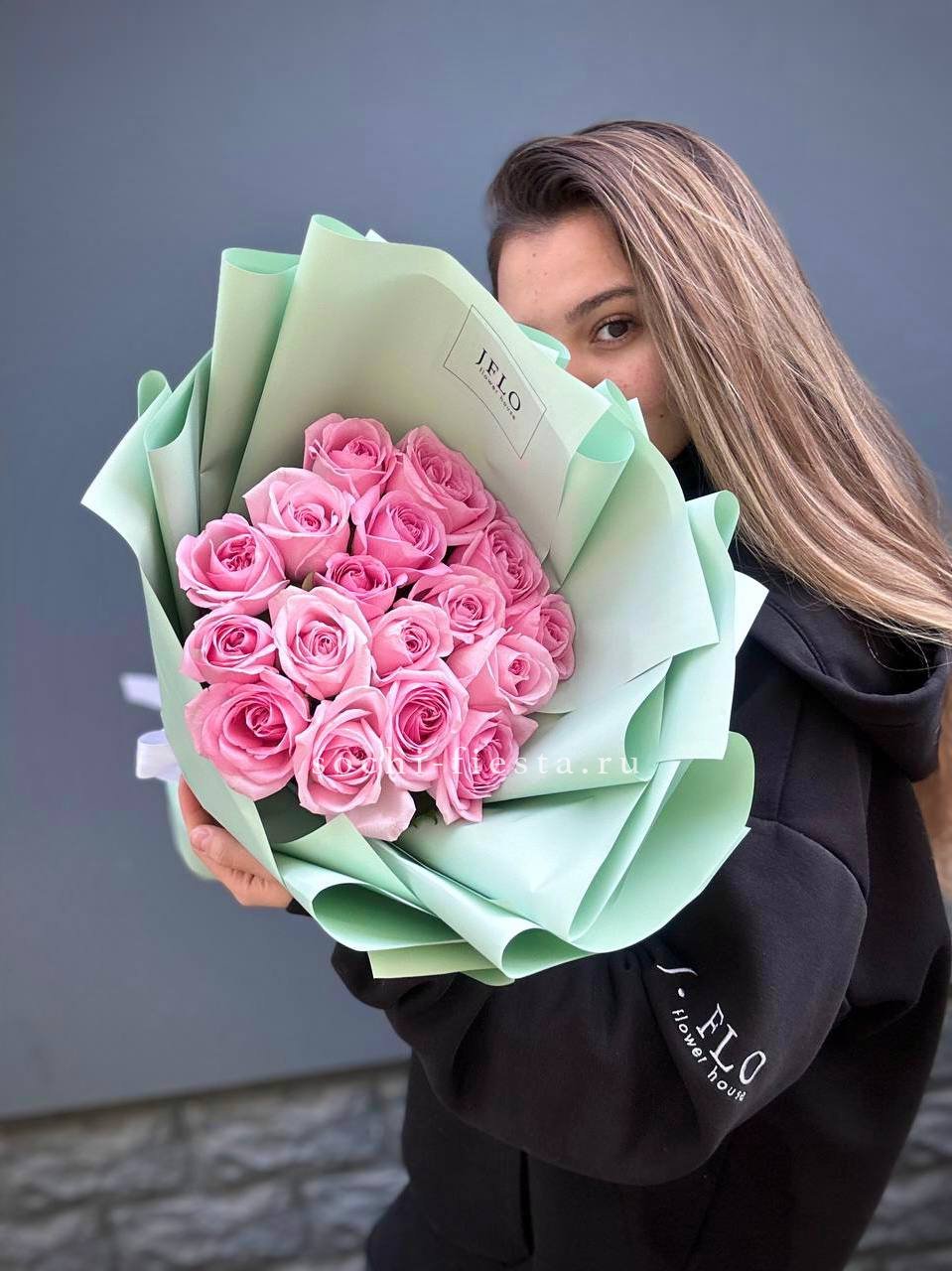 Двадцать девять роз с плотными бутонами насыщенного розового оттенка собраны в классический букет. Джумилия раскрывается постепенно, держит форму долго и радует глубиной цвета. Универсальное решение для выражения чувств без лишних слов.