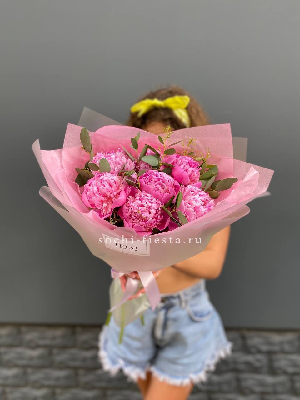 пионы, эвкалипт, тишью, пленка, лента.