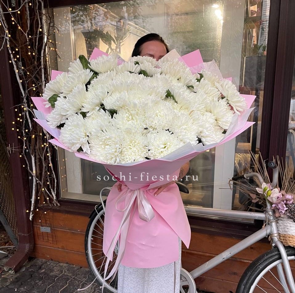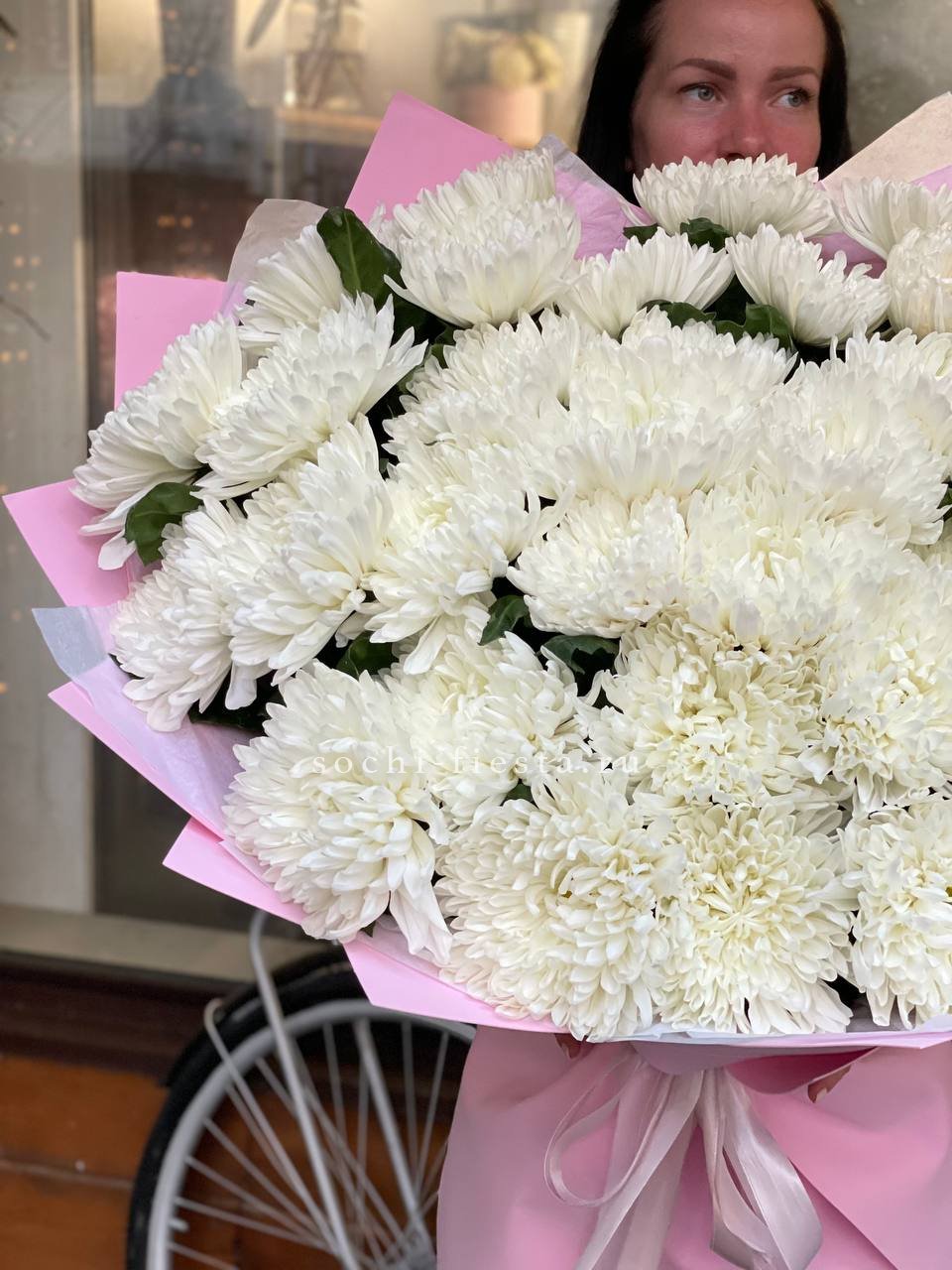 хризантема кустовая - 5 шт., лента, дизайнерская пленка.