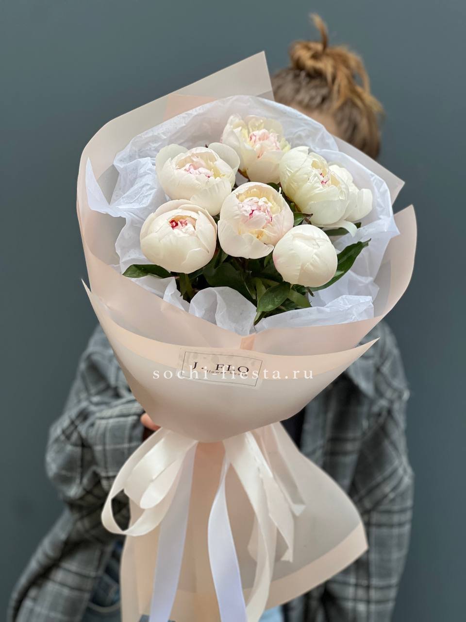 белые пионы - количество на выбор, лента, дизайнерская упаковка.