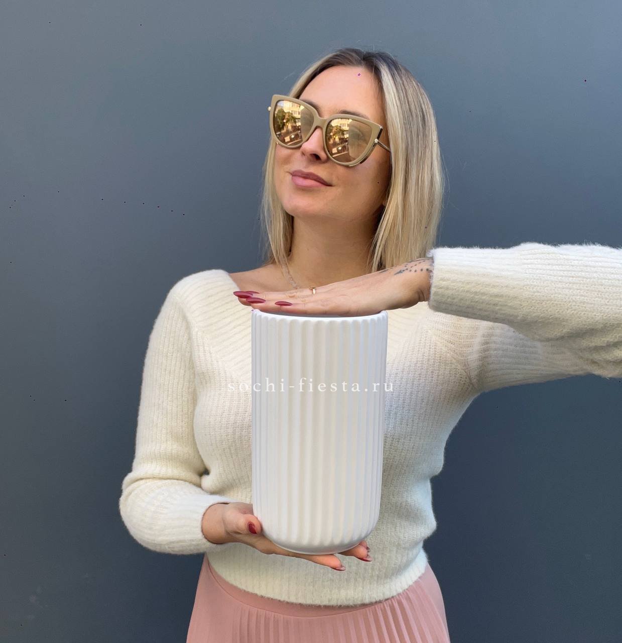 декоративная ваза- это изящное дополнение к любому интерьеру. Геометрический рисунок на белой керамике придает вазе современный и лаконичный вид, который гармонично впишется в любой дизайн. Высота 18 см. Ширина 12.5 см