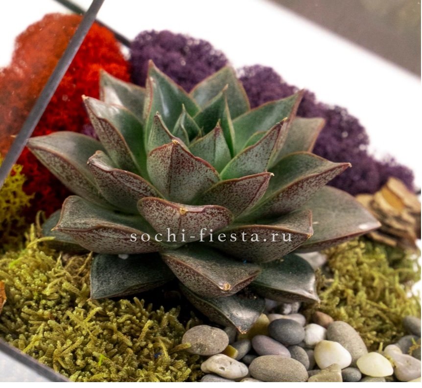 Флорариум Куб усеченный с суккулентом Каменная роза