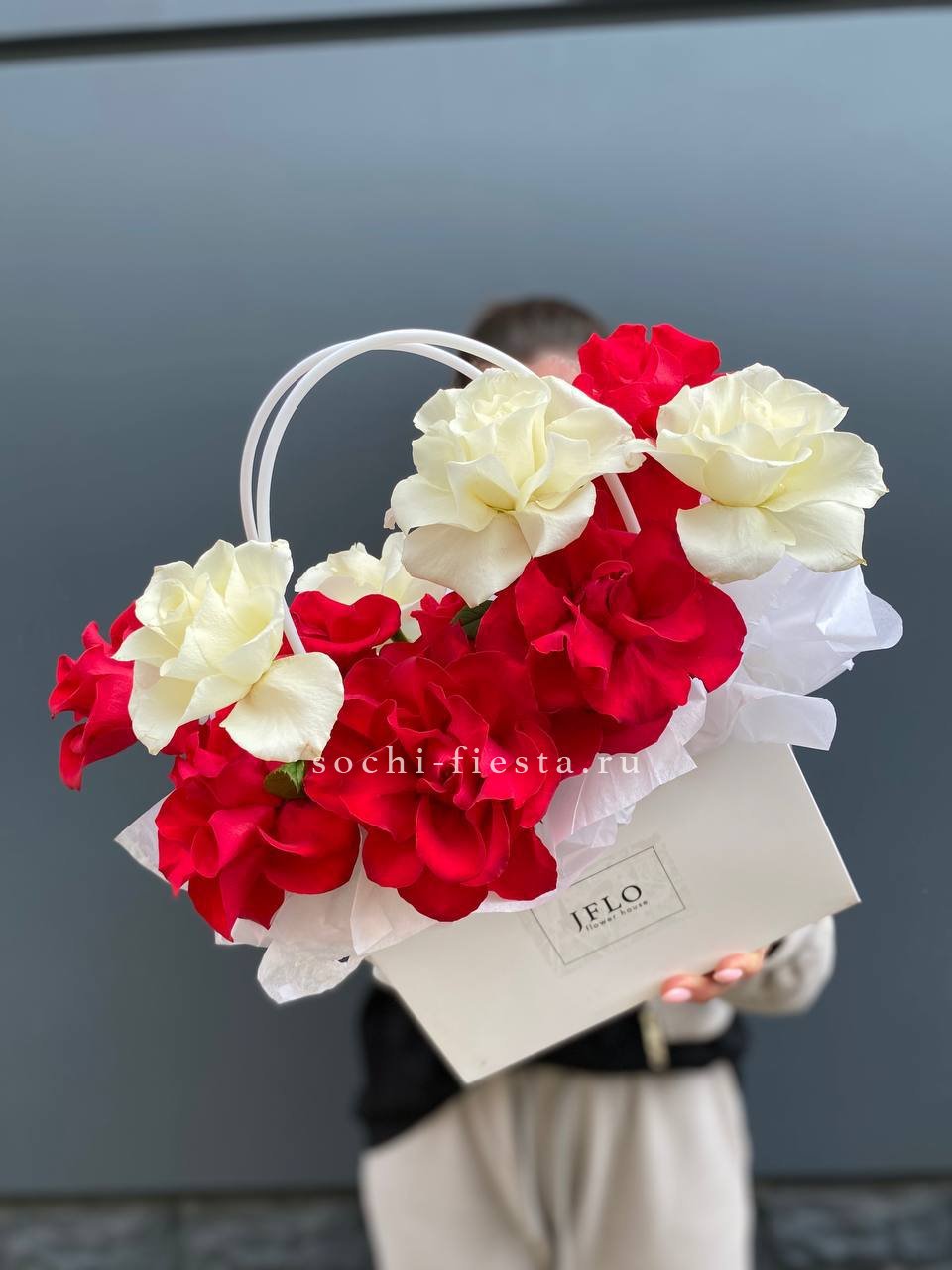 Белоснежные головки роз раскрываются постепенно и держат форму несколько дней. Монохромная гамма вписывается в минималистичный интерьер и современную эстетику.