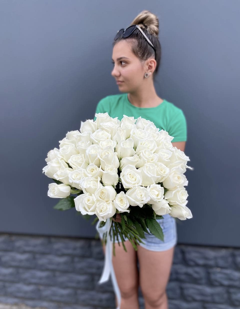 Тринадцать белоснежных бутонов собраны в компактную форму с ровным силуэтом. Букет легко размещается в вазе и сохраняет свежесть долгое время благодаря плотным лепесткам.