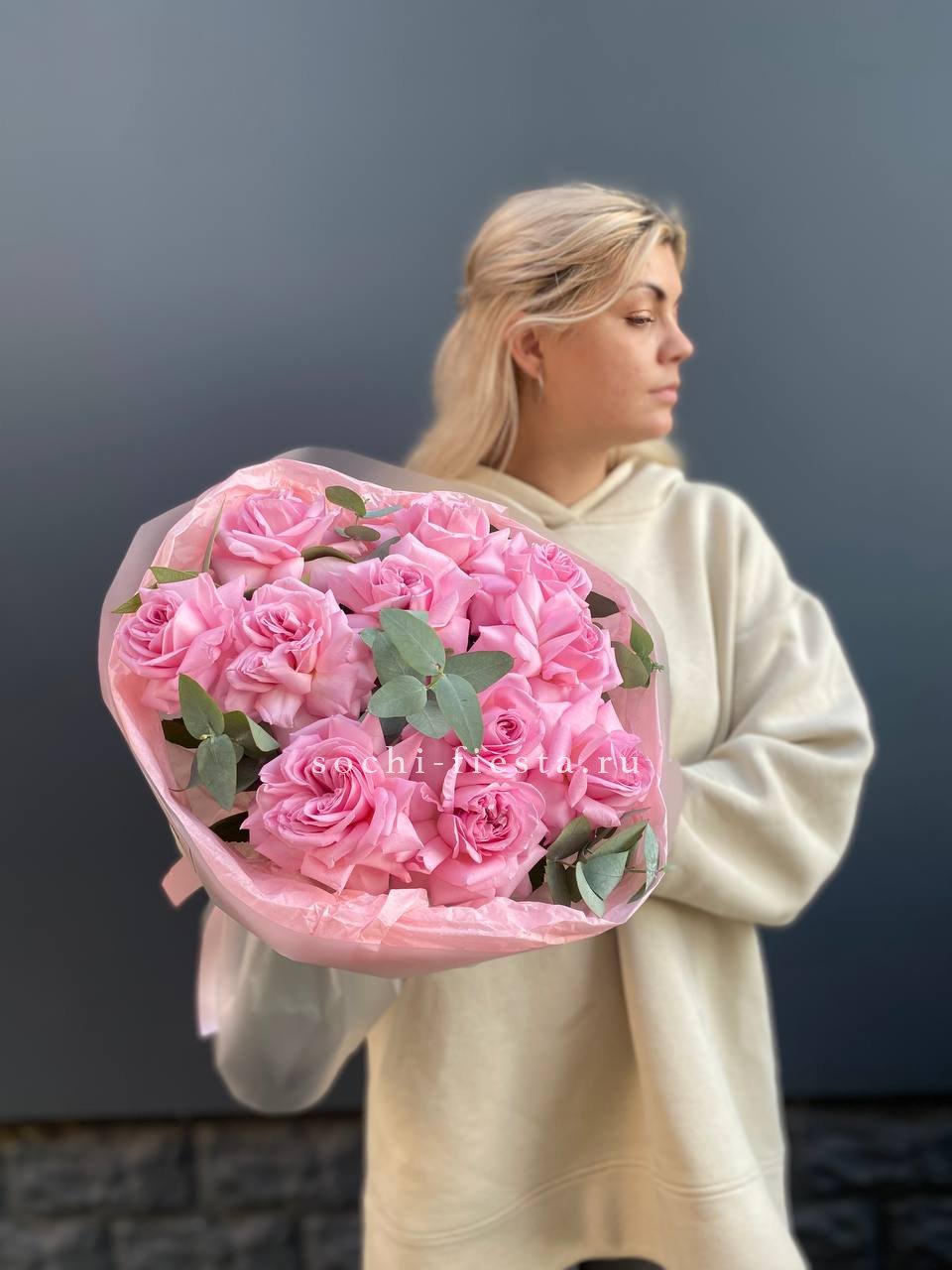вывернутые розы - 11 шт., эвкалипт-2шт, лента, авторская упаковка.