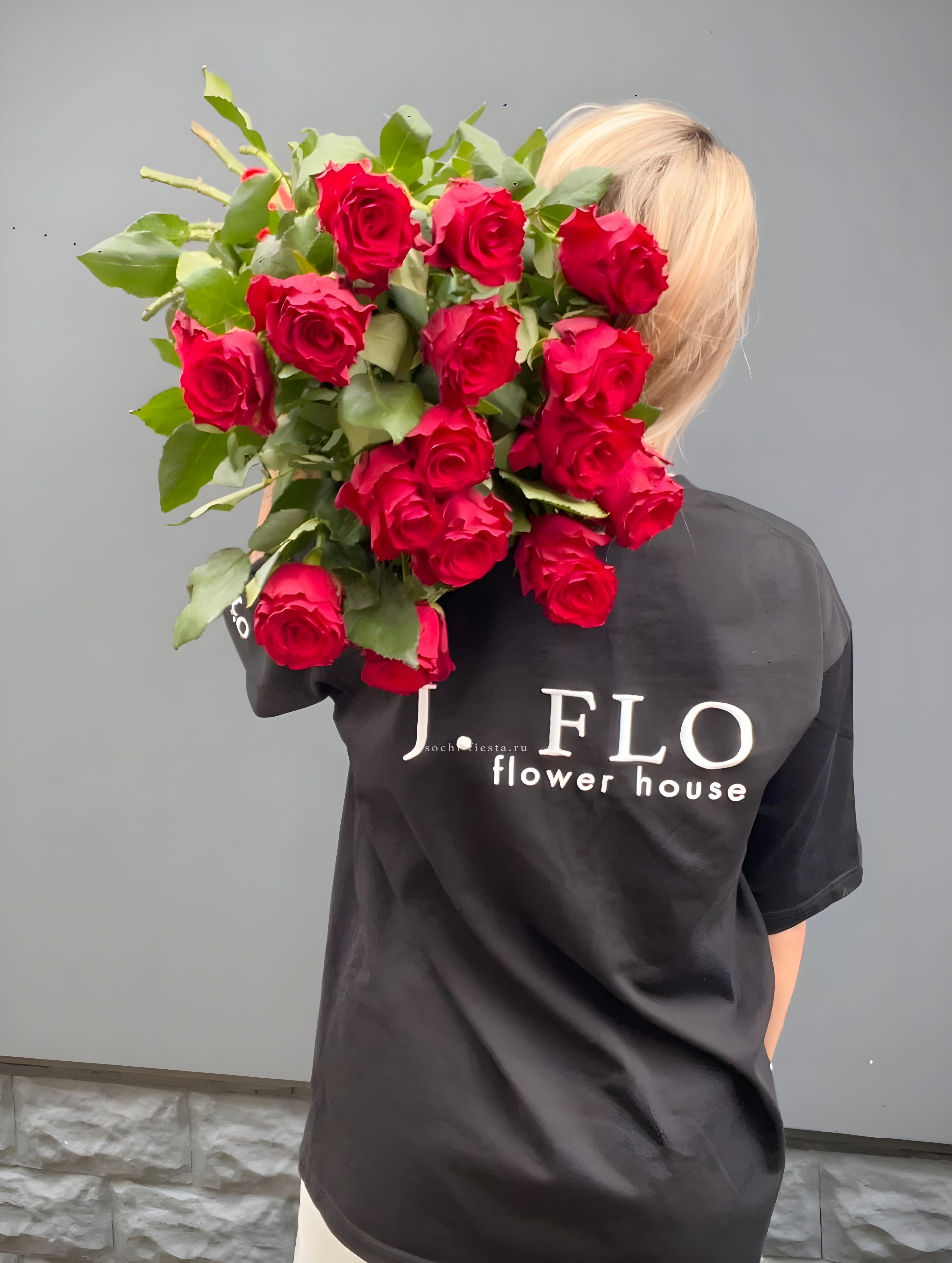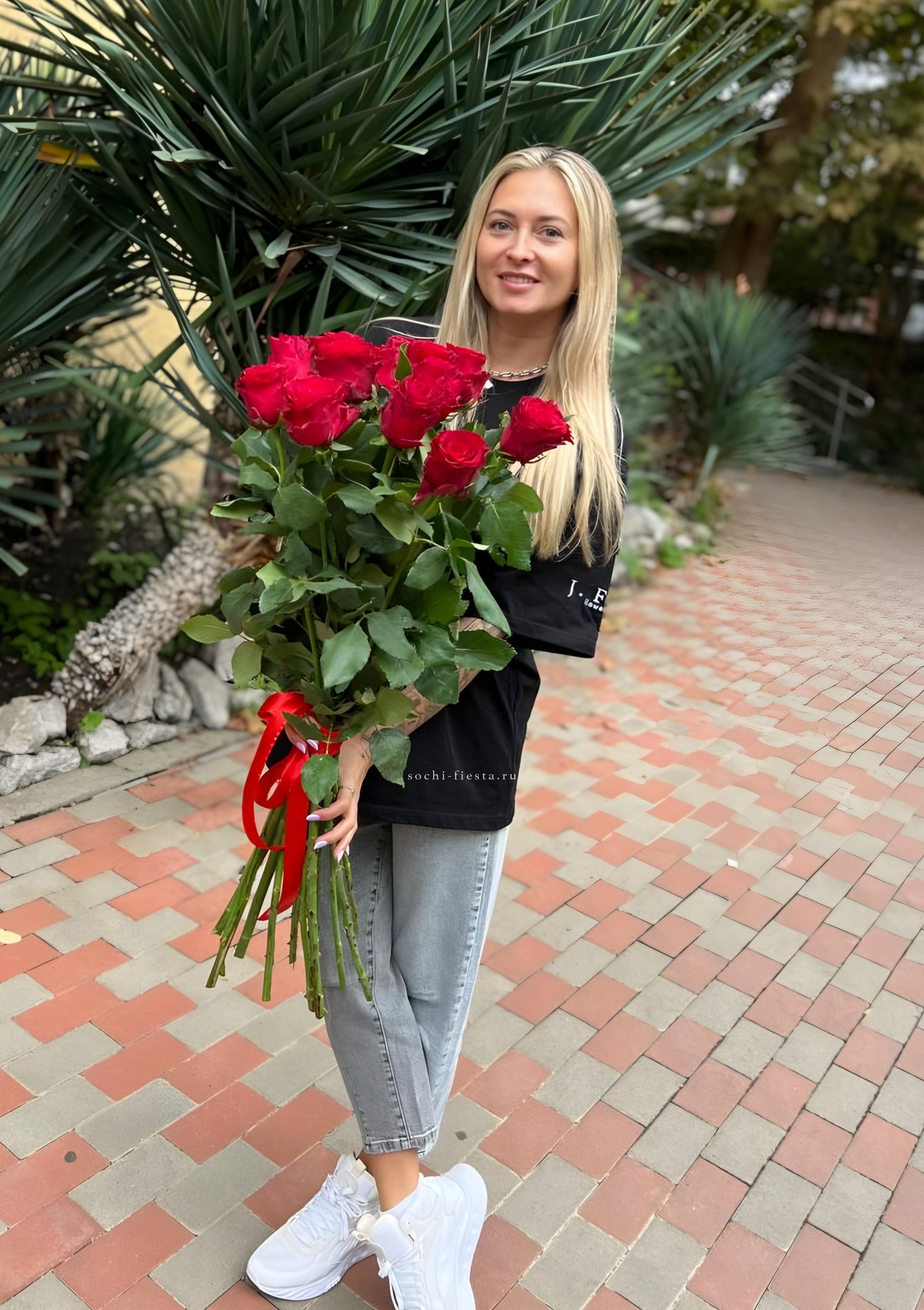 роза красная 70см - 15 шт., лента. Возможна упаковка на ваш выбор.