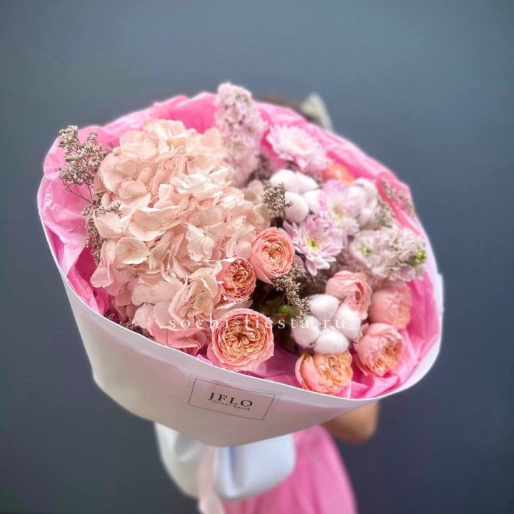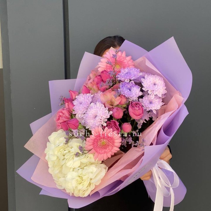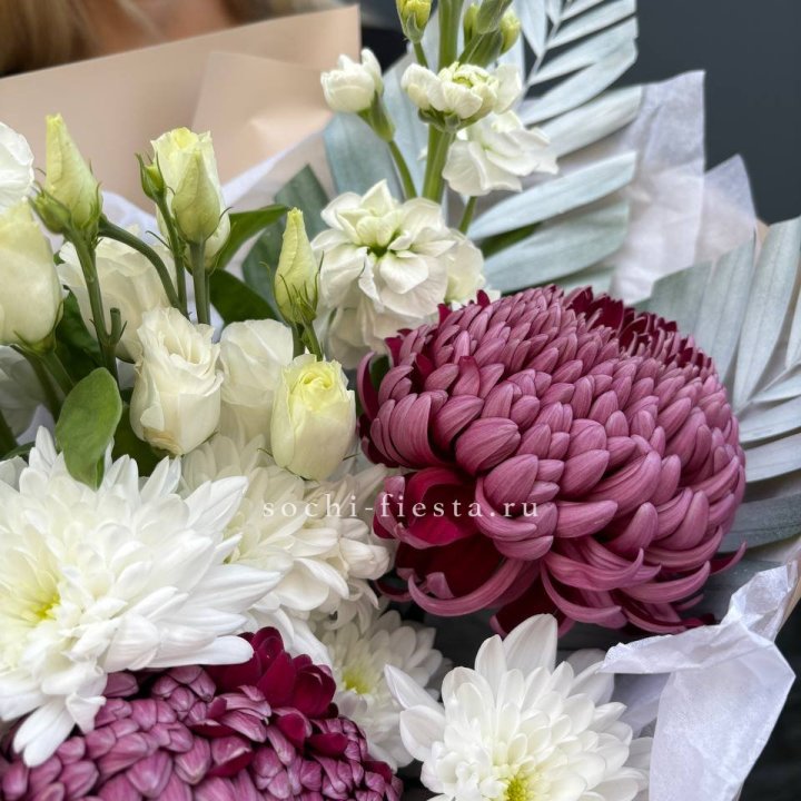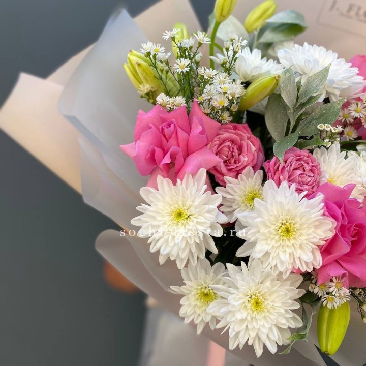 В Иркутске сборный букет — один из главных флористических форматов. Небольшой город не нуждается в авангарде и экспериментах: здесь ценят понятное, красивое и живое. Сборный букет с розами, хризантемами и сезонными акцентами — то, что флорист в Иркутске делает изо дня в день, и делает хорошо.