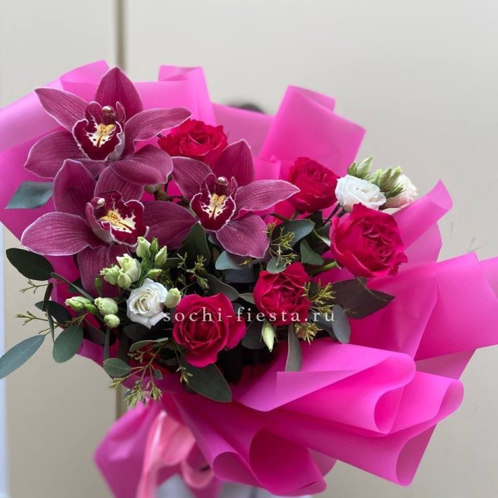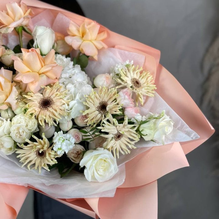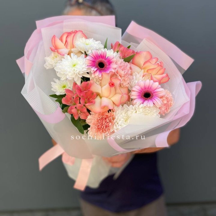 В Иркутске сборный букет — один из главных флористических форматов. Небольшой город не нуждается в авангарде и экспериментах: здесь ценят понятное, красивое и живое. Сборный букет с розами, хризантемами и сезонными акцентами — то, что флорист в Иркутске делает изо дня в день, и делает хорошо.