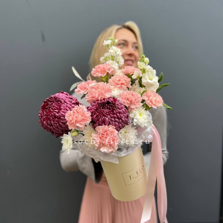 Летние семейные торжества, дни рождения, юбилеи — основной поток летних заказов. Флорист знает клиентов лично, часто предлагает сезонный акцент к знакомому формату: пионы к обычному розовому букету, гортензия к миксу с эвкалиптом.